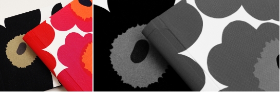 写真集の外装にフィンランド、マリメッコの生地を使用しています。セレクトしたのはマリヤ・イソラがデザインしたピエー二ウニッコ。